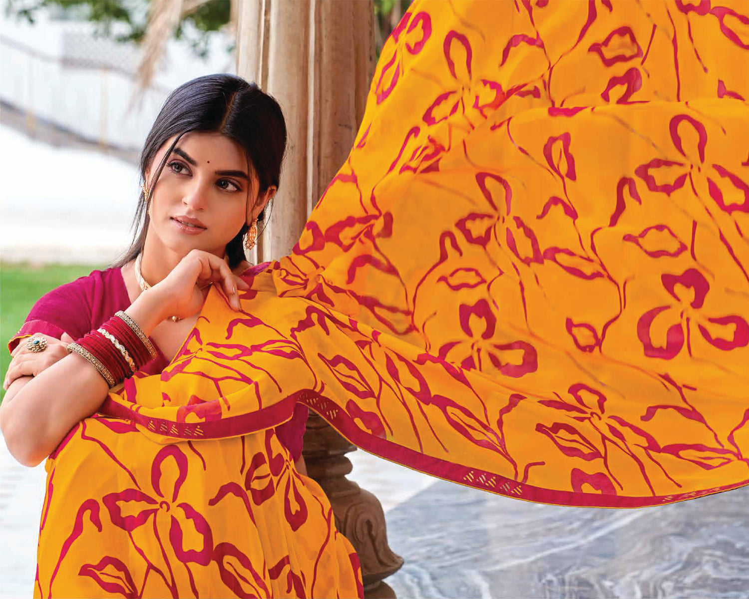 Crafted to perfection, this jorjet saree with chic prints offers a delicate blend of tradition and trend. Light, airy, and endlessly stylish.