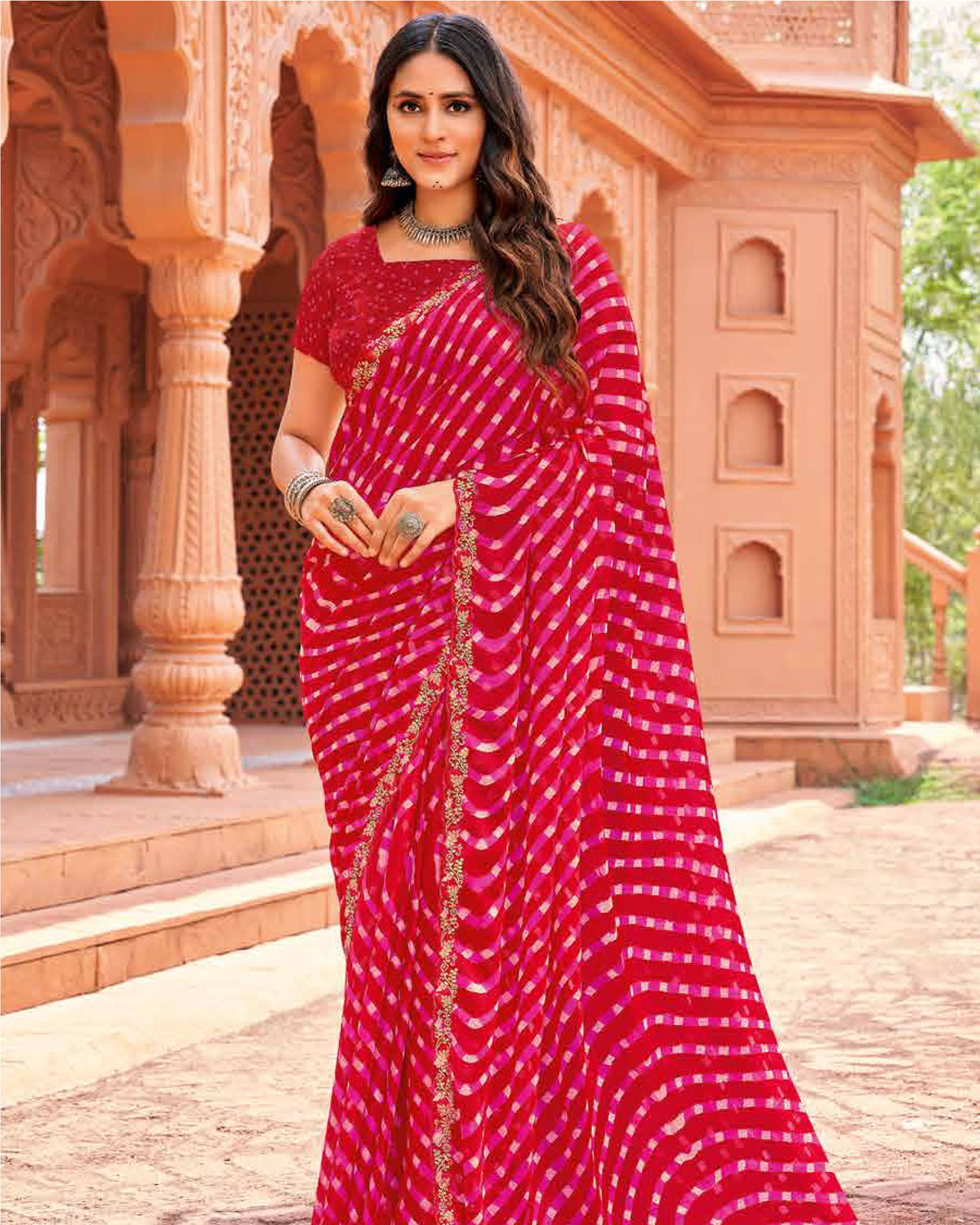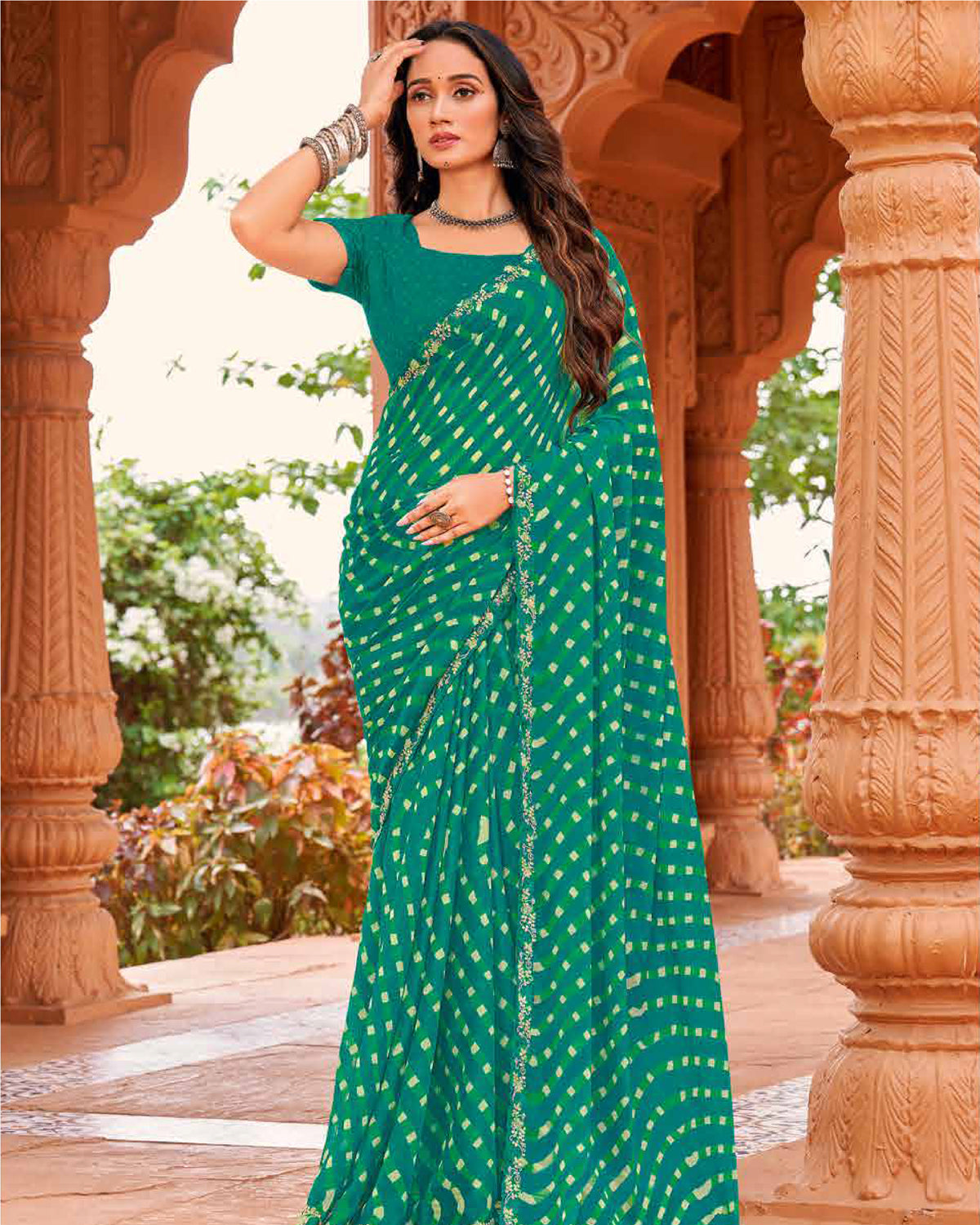 Celebrate the art of Bandhej with delicate dotted patterns on chiffon, perfect for festive vibes and graceful gatherings.