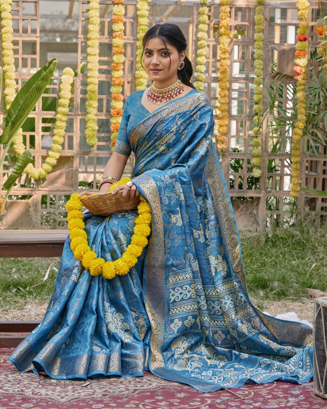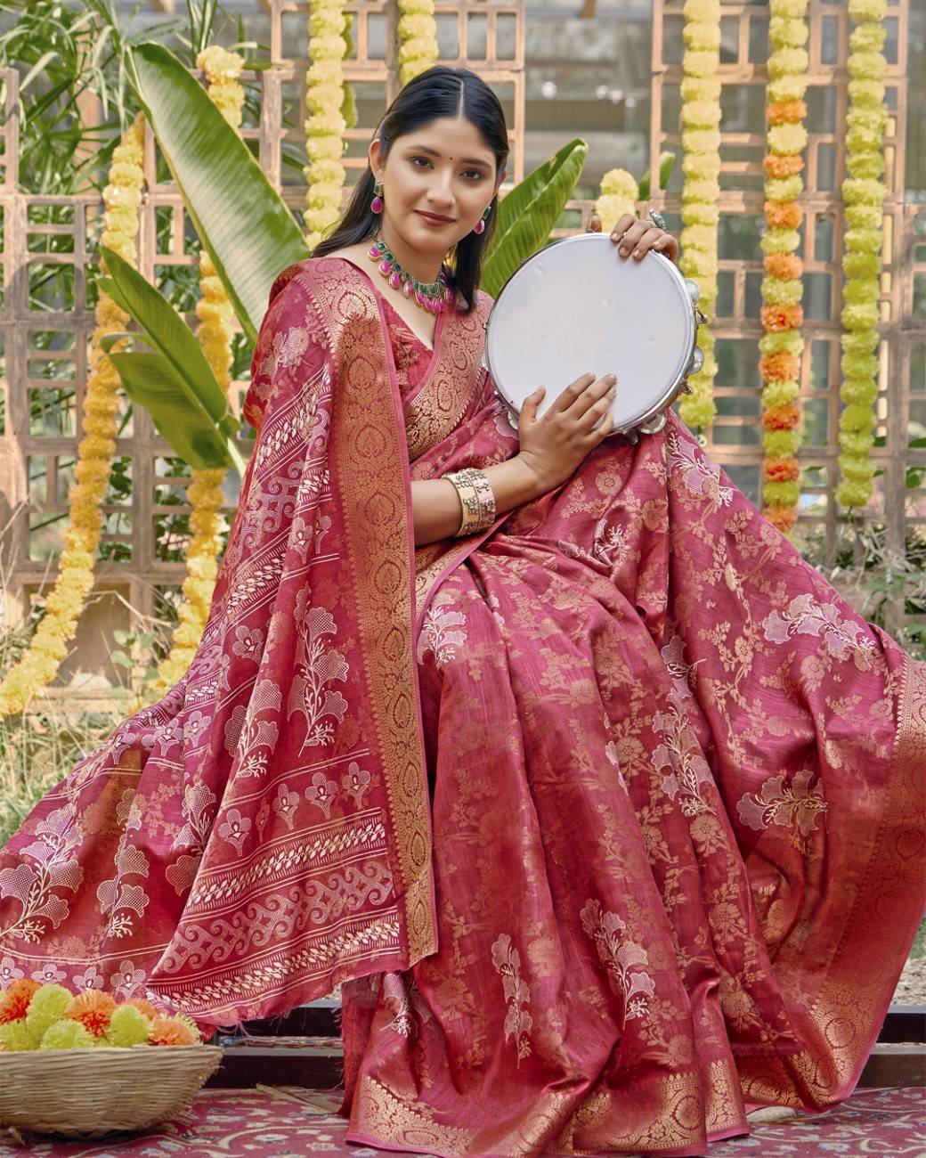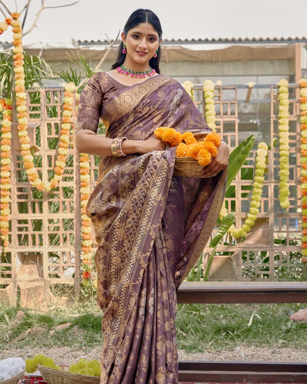 This silk saree pairs chic floral artistry with a smooth, flowing texture. The vibrant design and rich silk feel make it ideal for functions, celebrations, and festive wear.