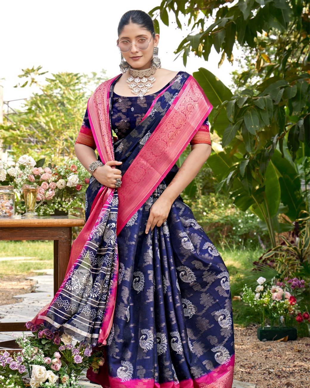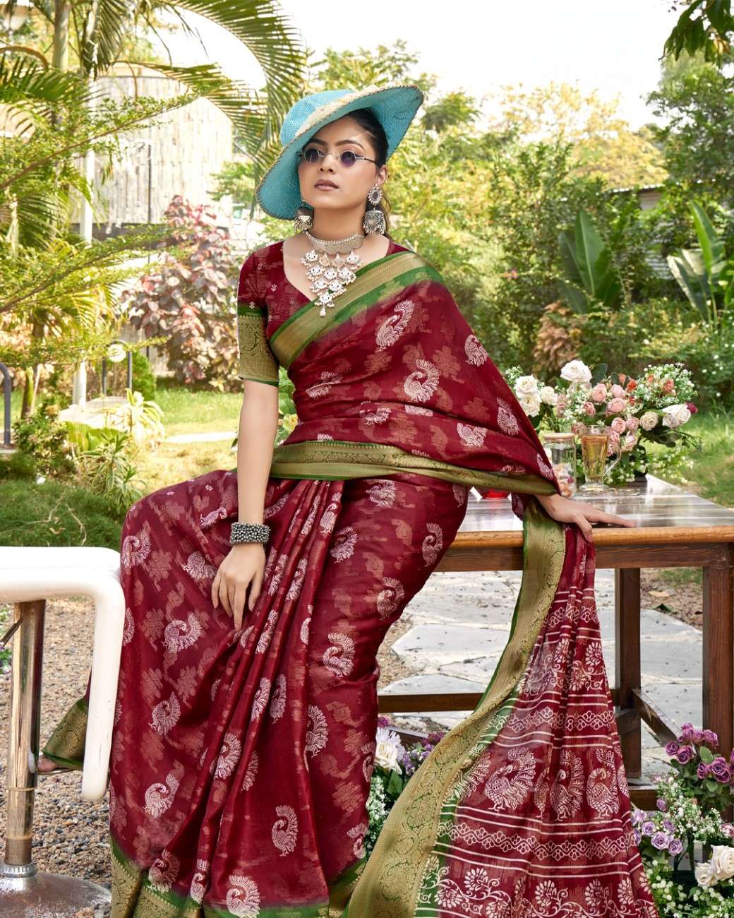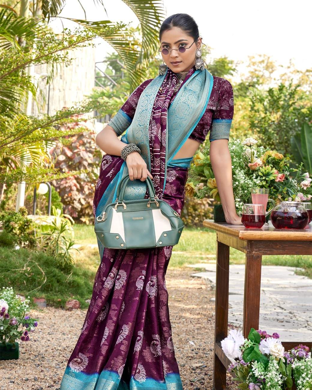 With misty floral patterns and a smooth silk texture, this saree brings a dreamy, feminine charm. Its vibrant hues and graceful drape make it a stunning wardrobe essential.
