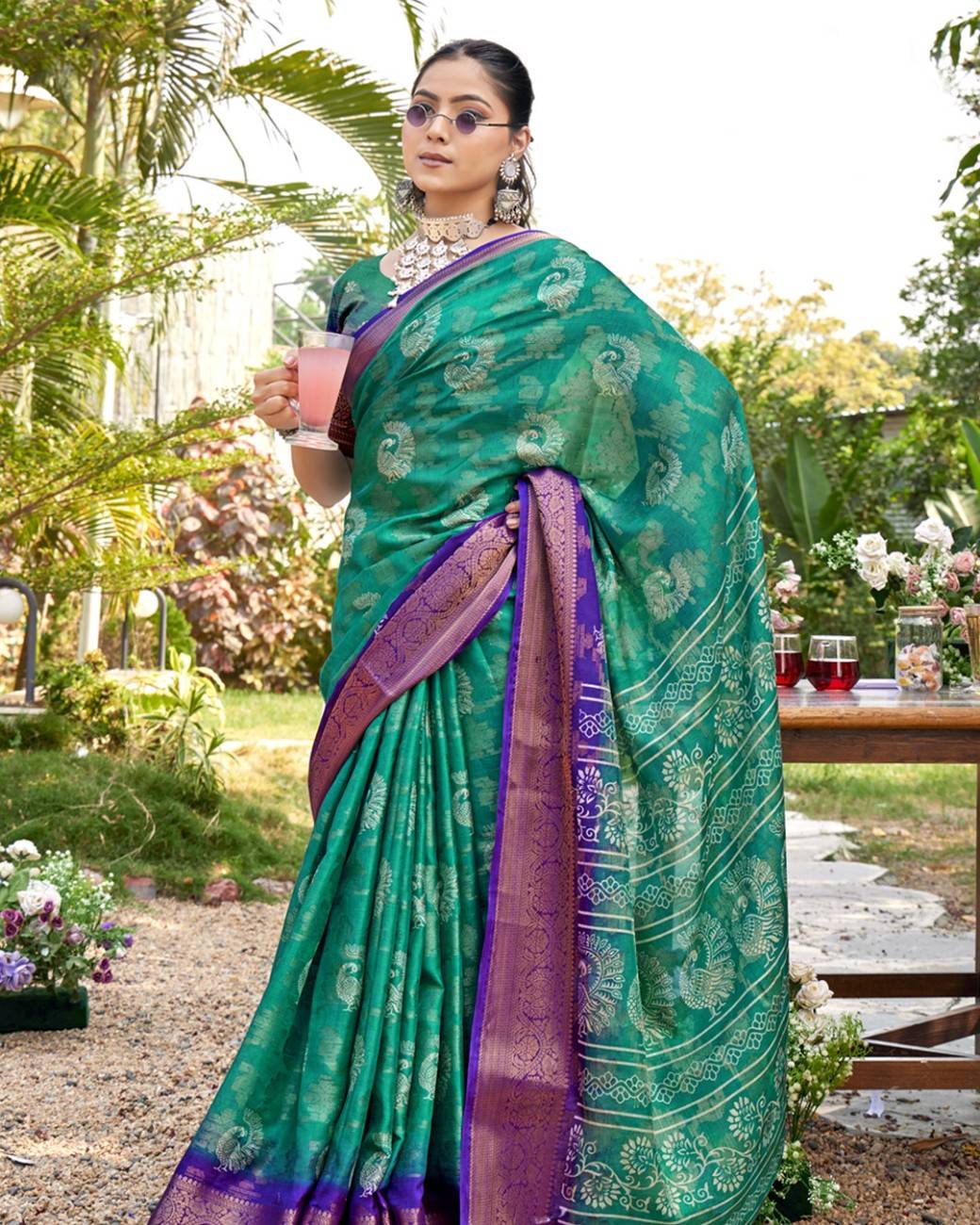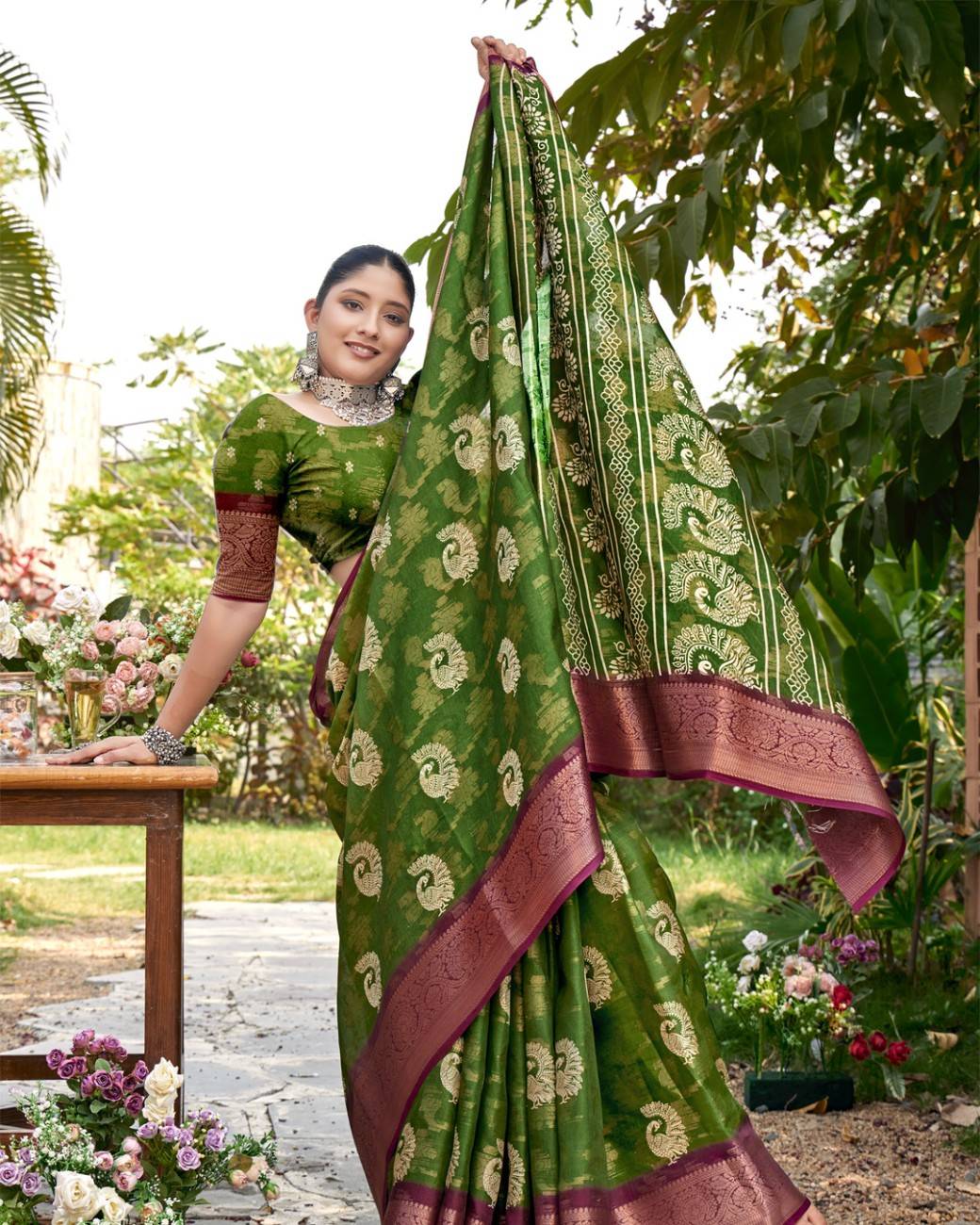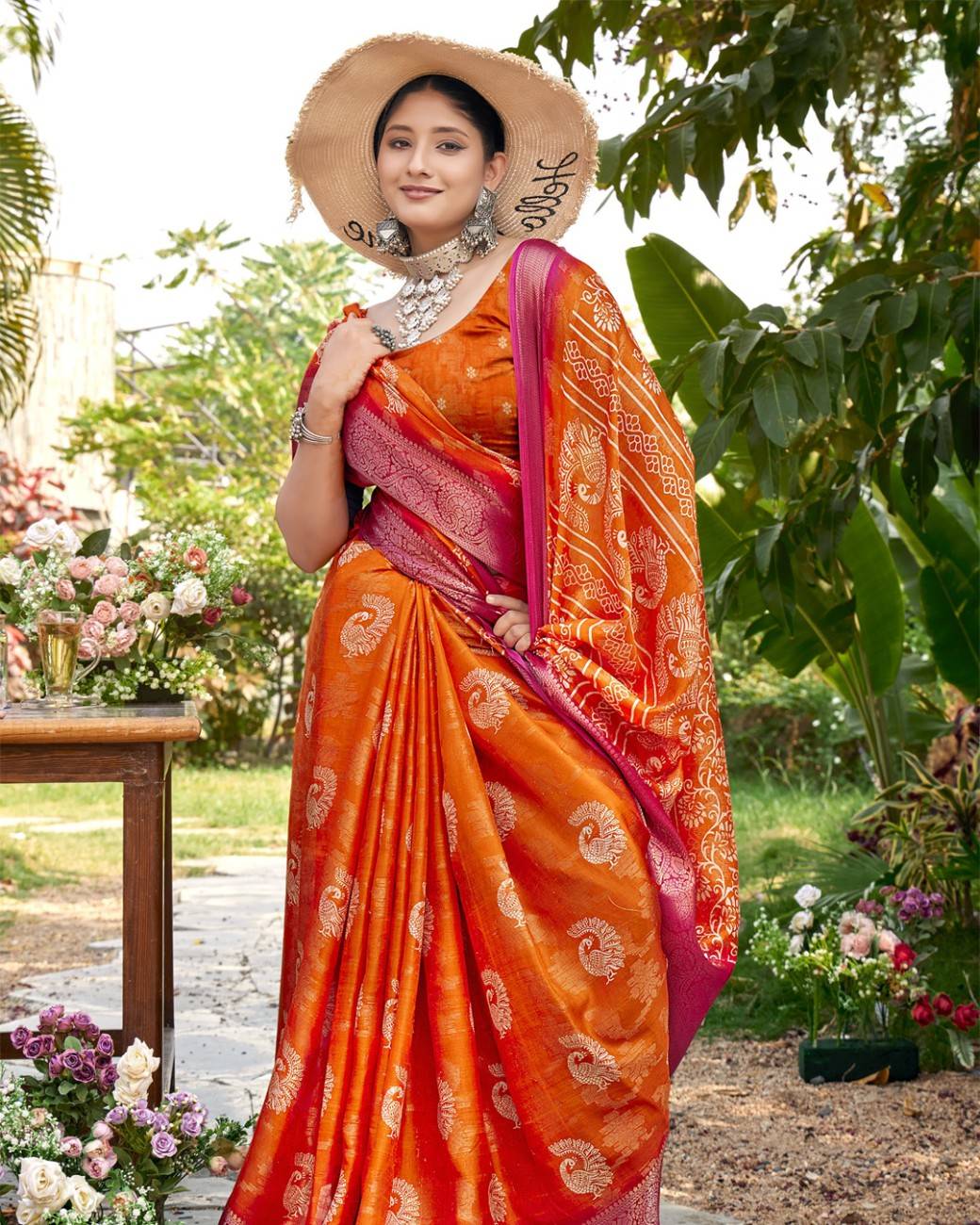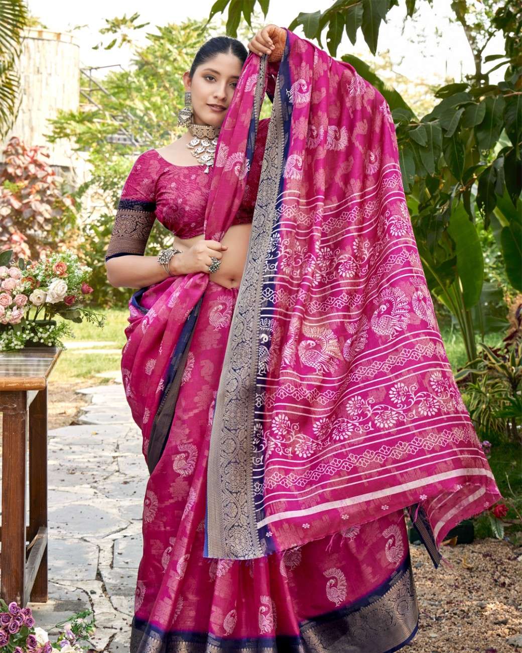 With misty floral patterns and a smooth silk texture, this saree brings a dreamy, feminine charm. Its vibrant hues and graceful drape make it a stunning wardrobe essential.
