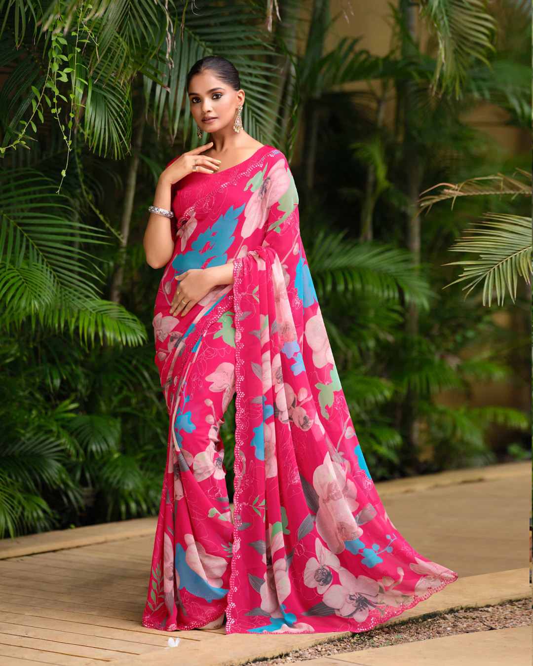 Soft, flowy georgette paired with blooming floral prints—FloralBliss brings effortless charm and feminine grace. Perfect for daytime functions, festive moments, and elegant outings.