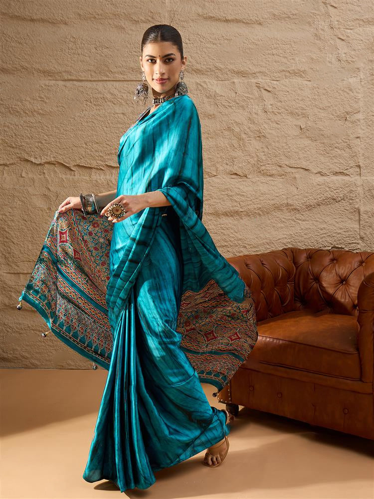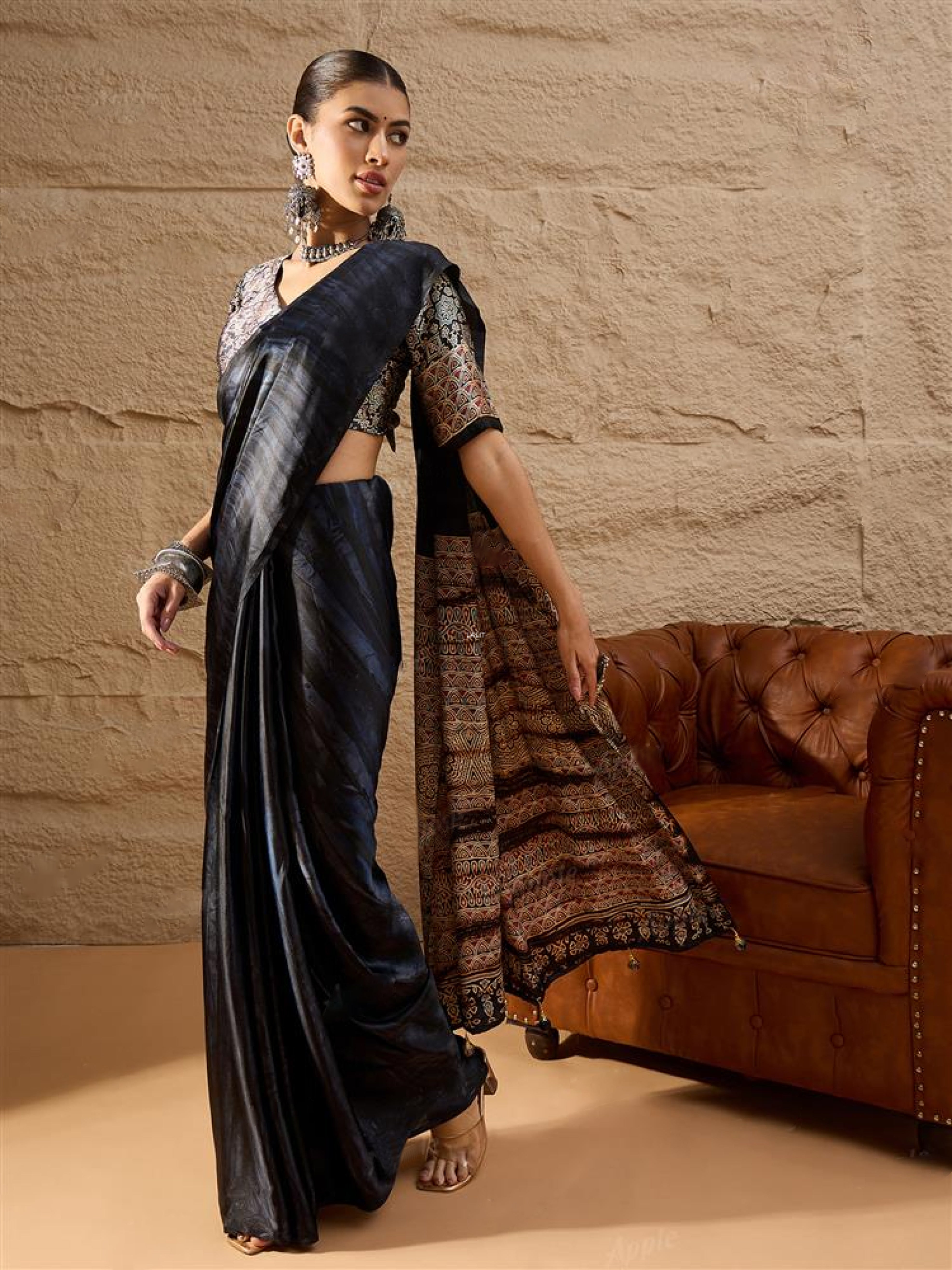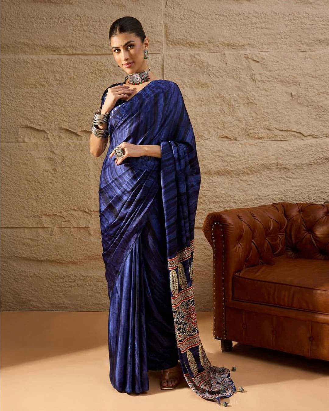 Italiva Elegance features premium Italian silk adorned with delicate prints. Its glossy sheen and feather-soft drape redefine sophistication, making it perfect for high-end festive or evening wear.