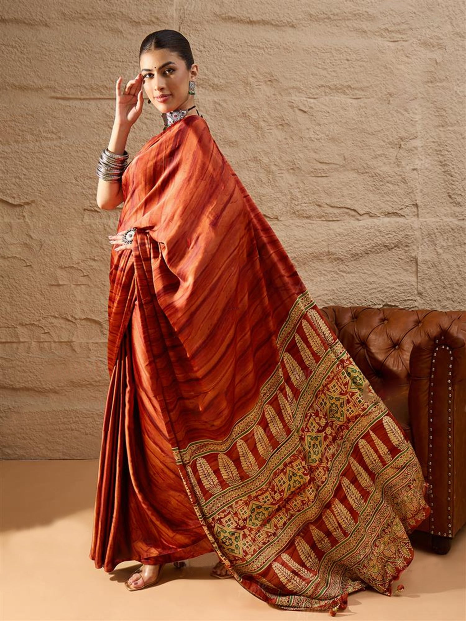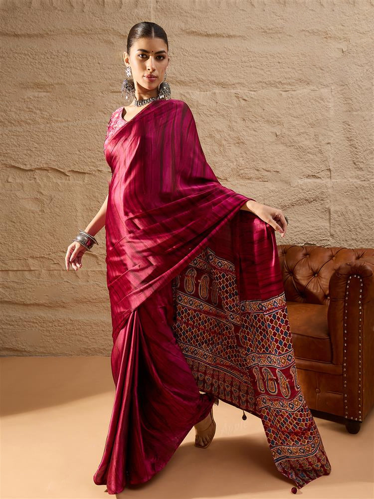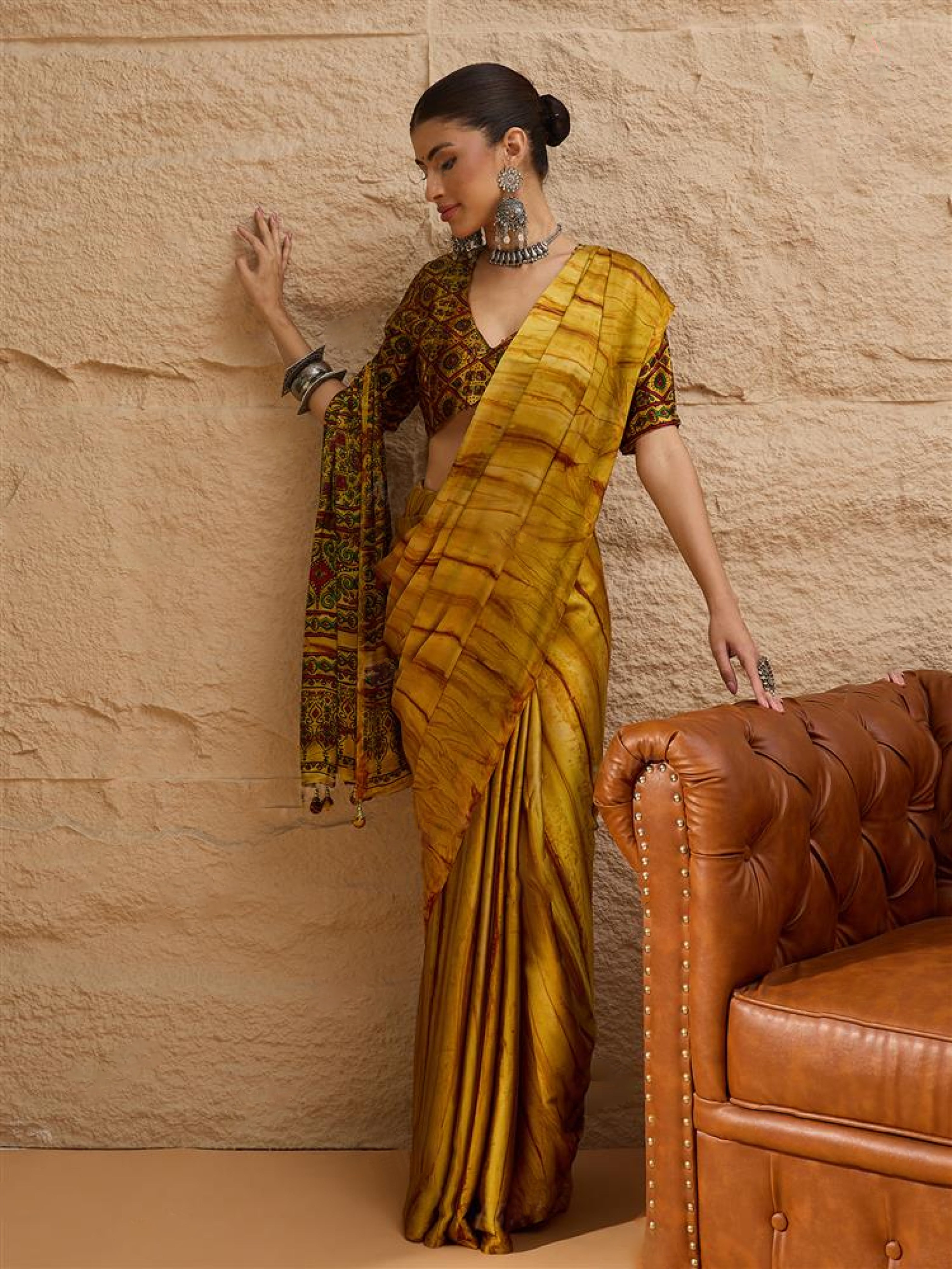 Italiva Elegance features premium Italian silk adorned with delicate prints. Its glossy sheen and feather-soft drape redefine sophistication, making it perfect for high-end festive or evening wear.