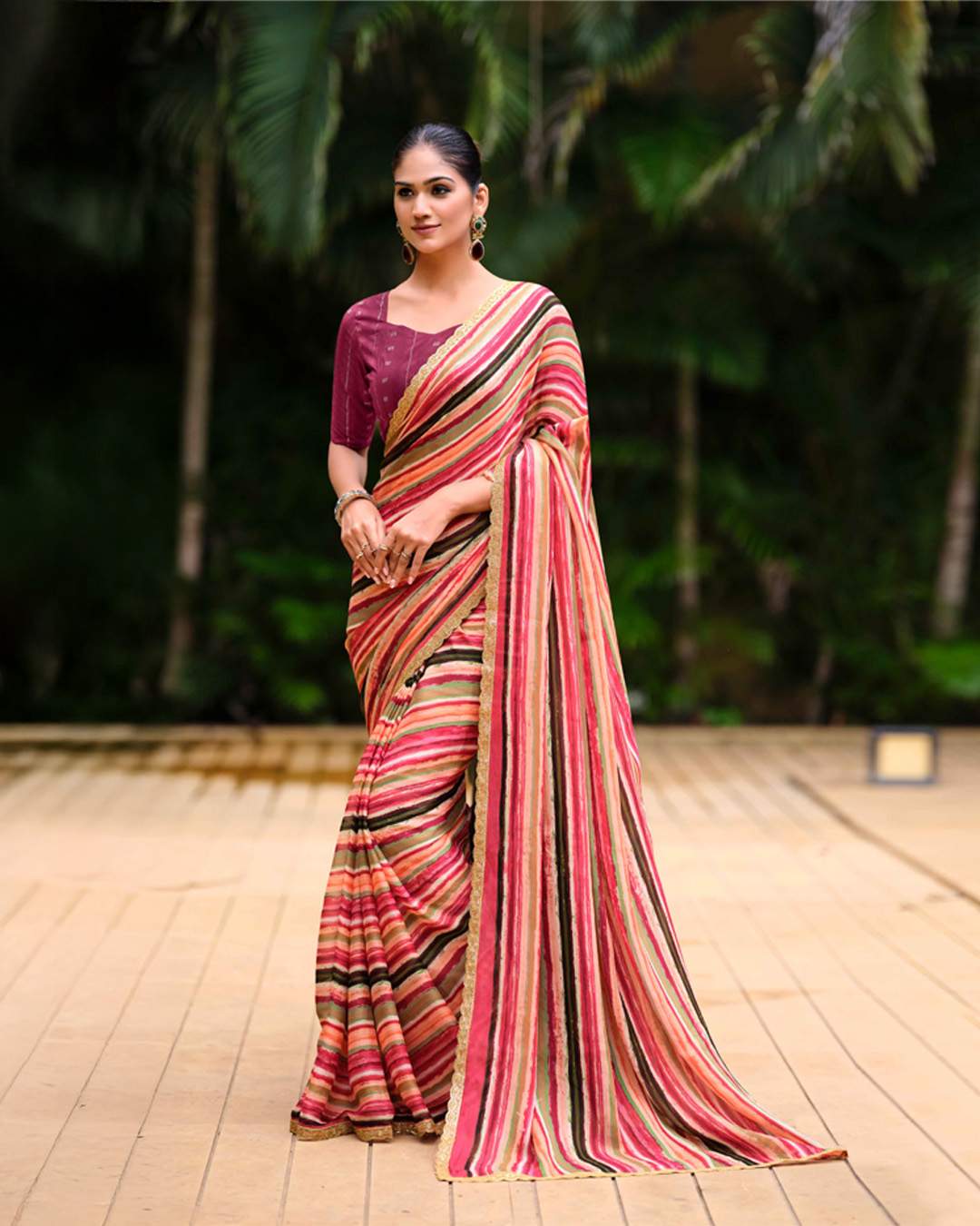 StripeSilk blends the fluid grace of georgette with stylish lining work. Its chic pattern and lightweight texture make it a perfect choice for women who prefer classy yet fashionable looks.