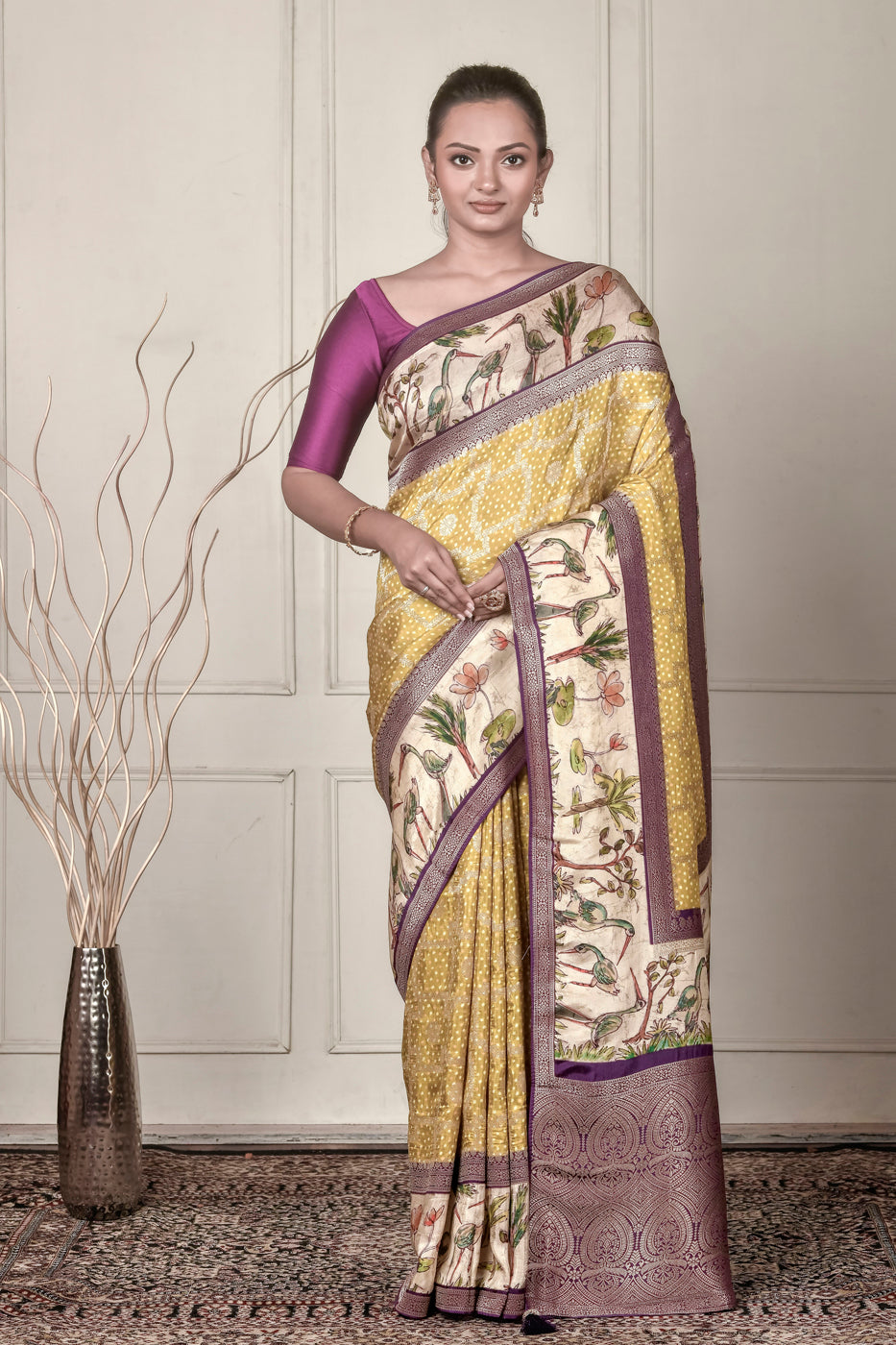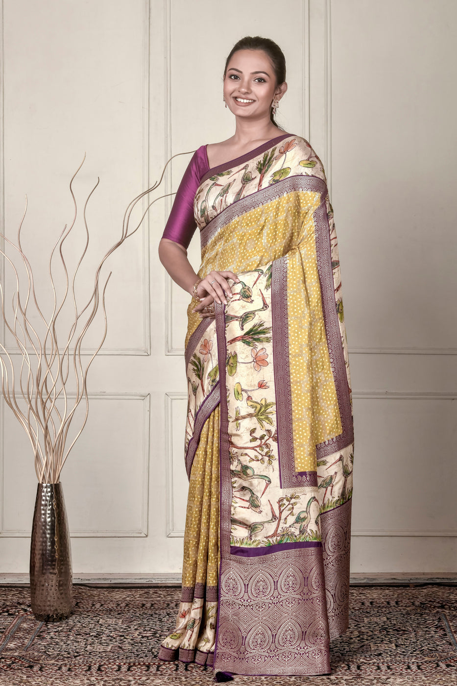 A luxurious silk saree featuring intricate Kathan embroidery, blending tradition with timeless elegance.