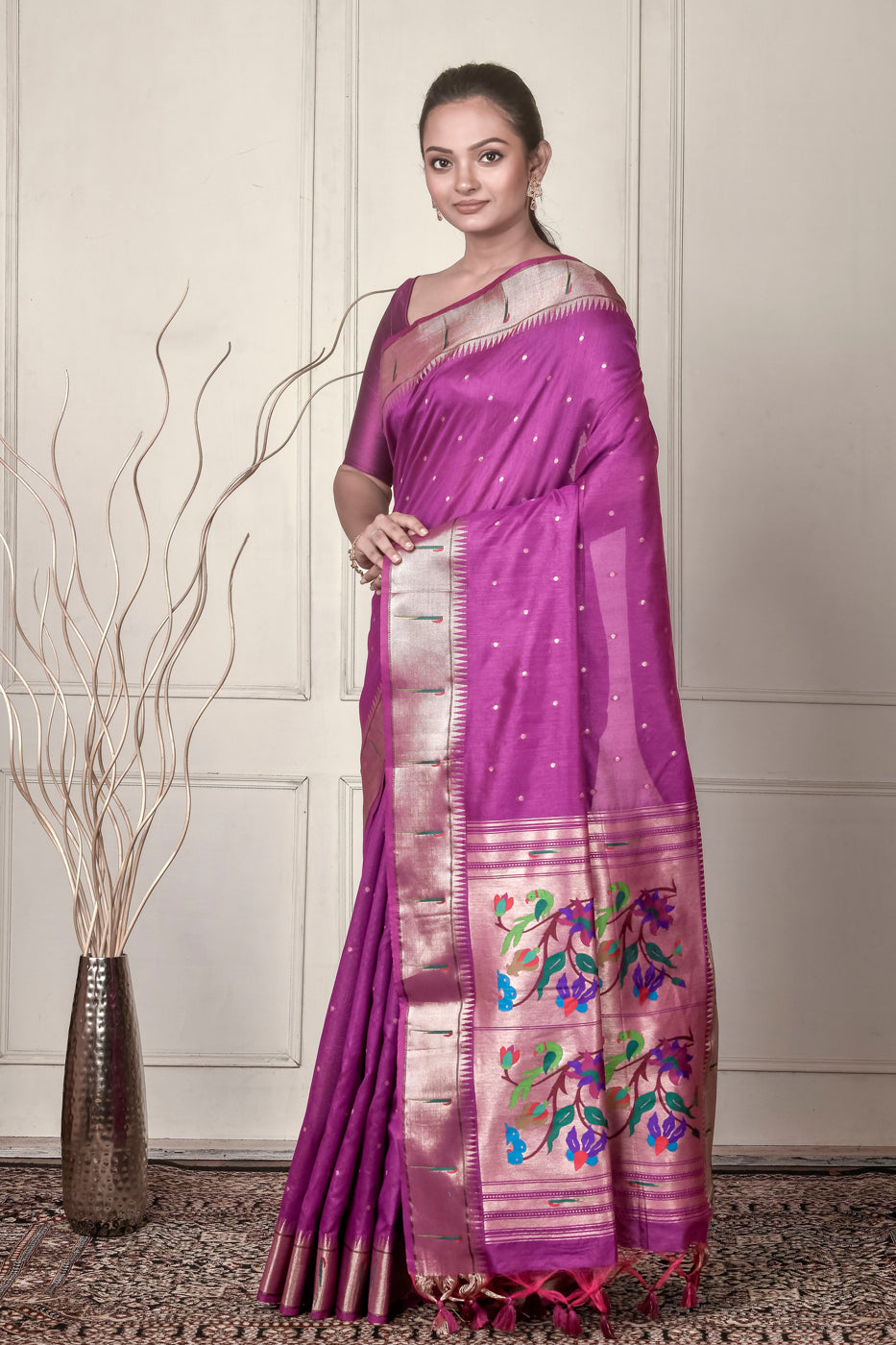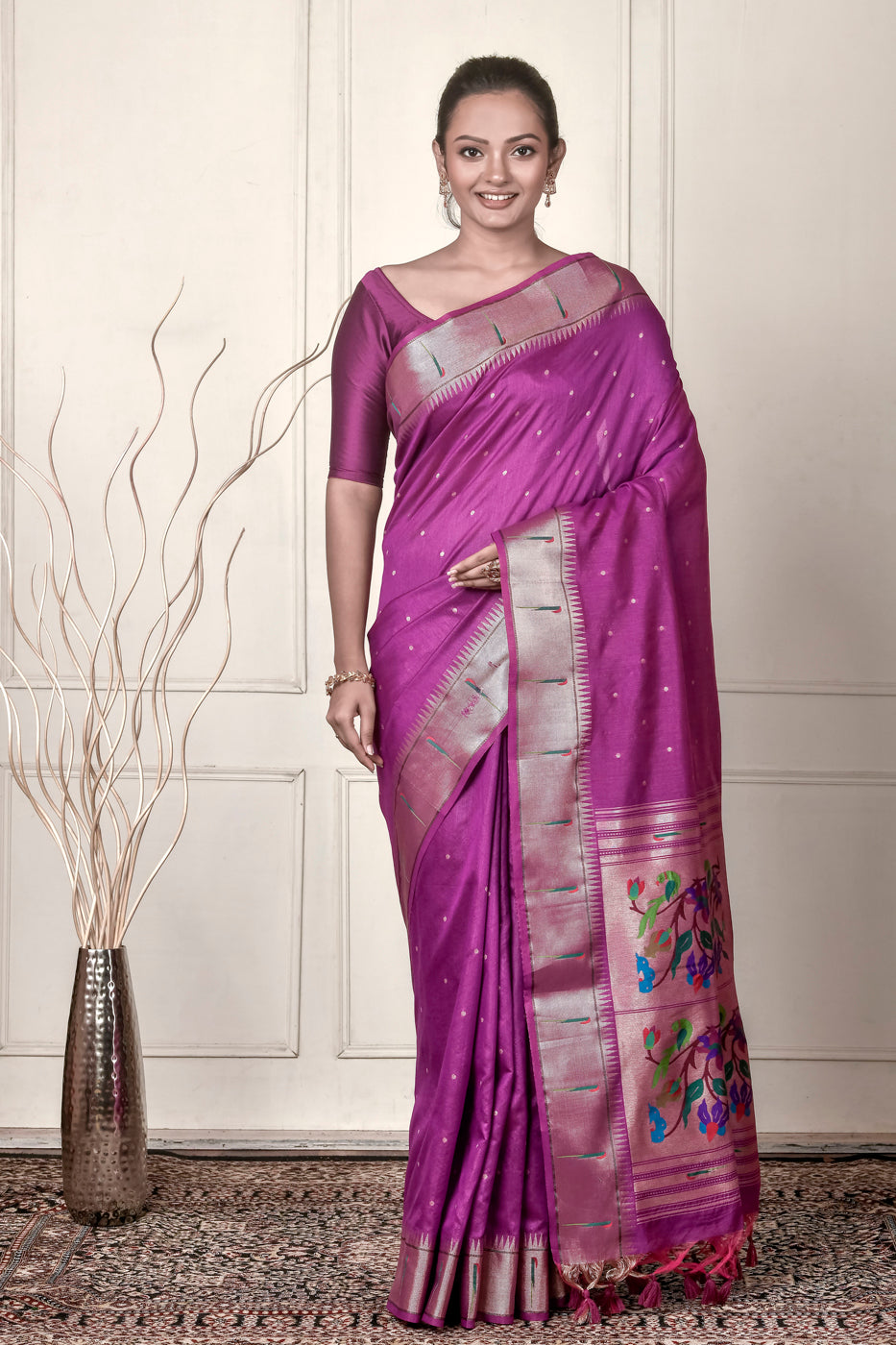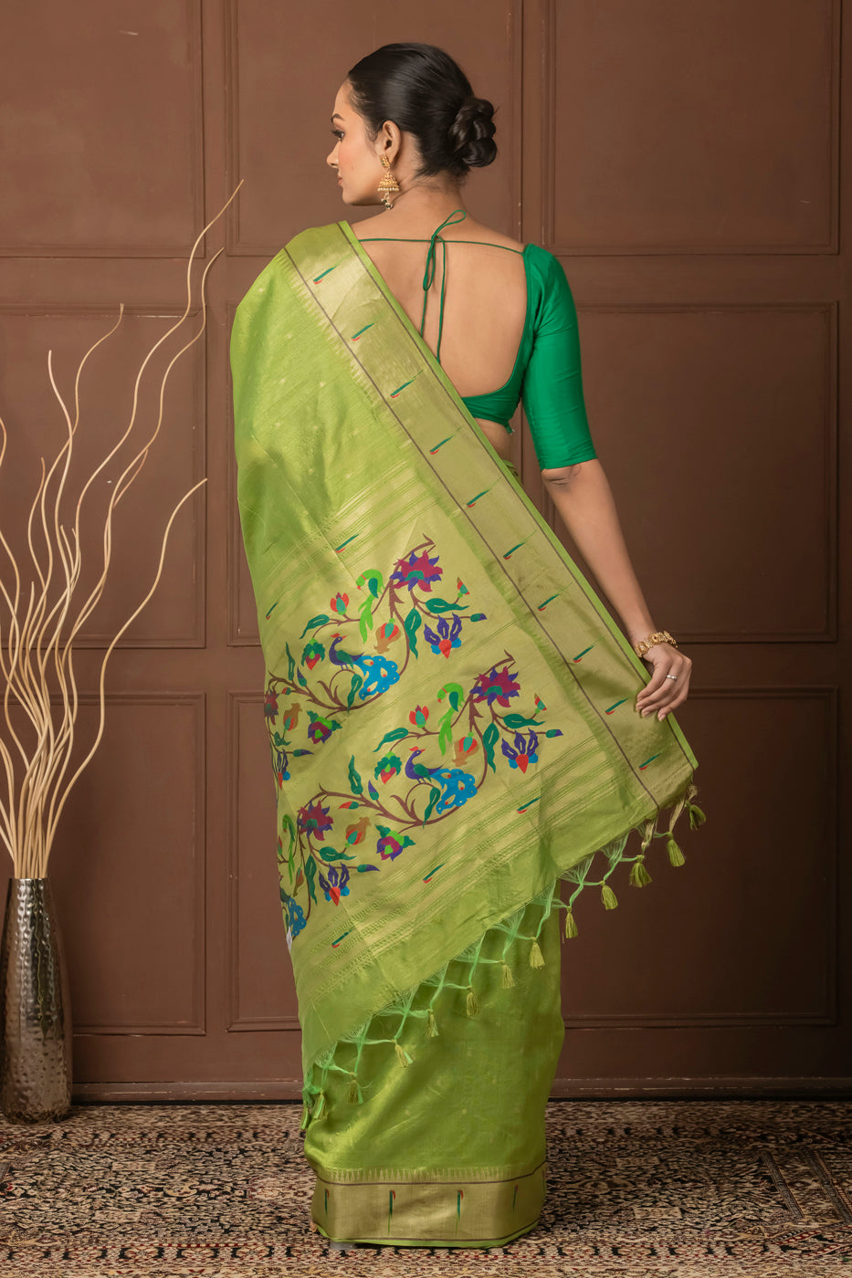 A heritage treasure, this Paithani saree radiates timeless beauty with its signature Muniya artistry.