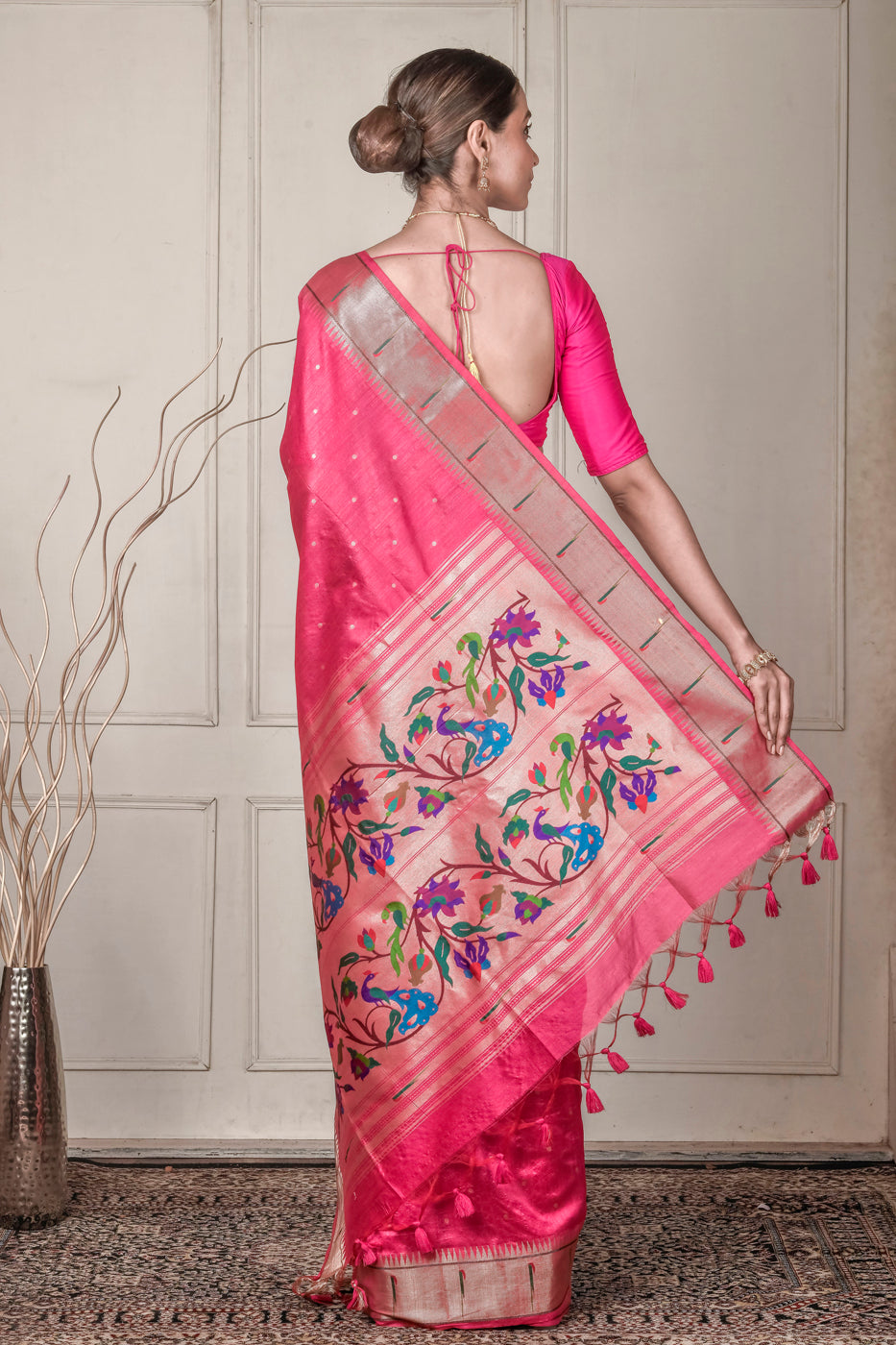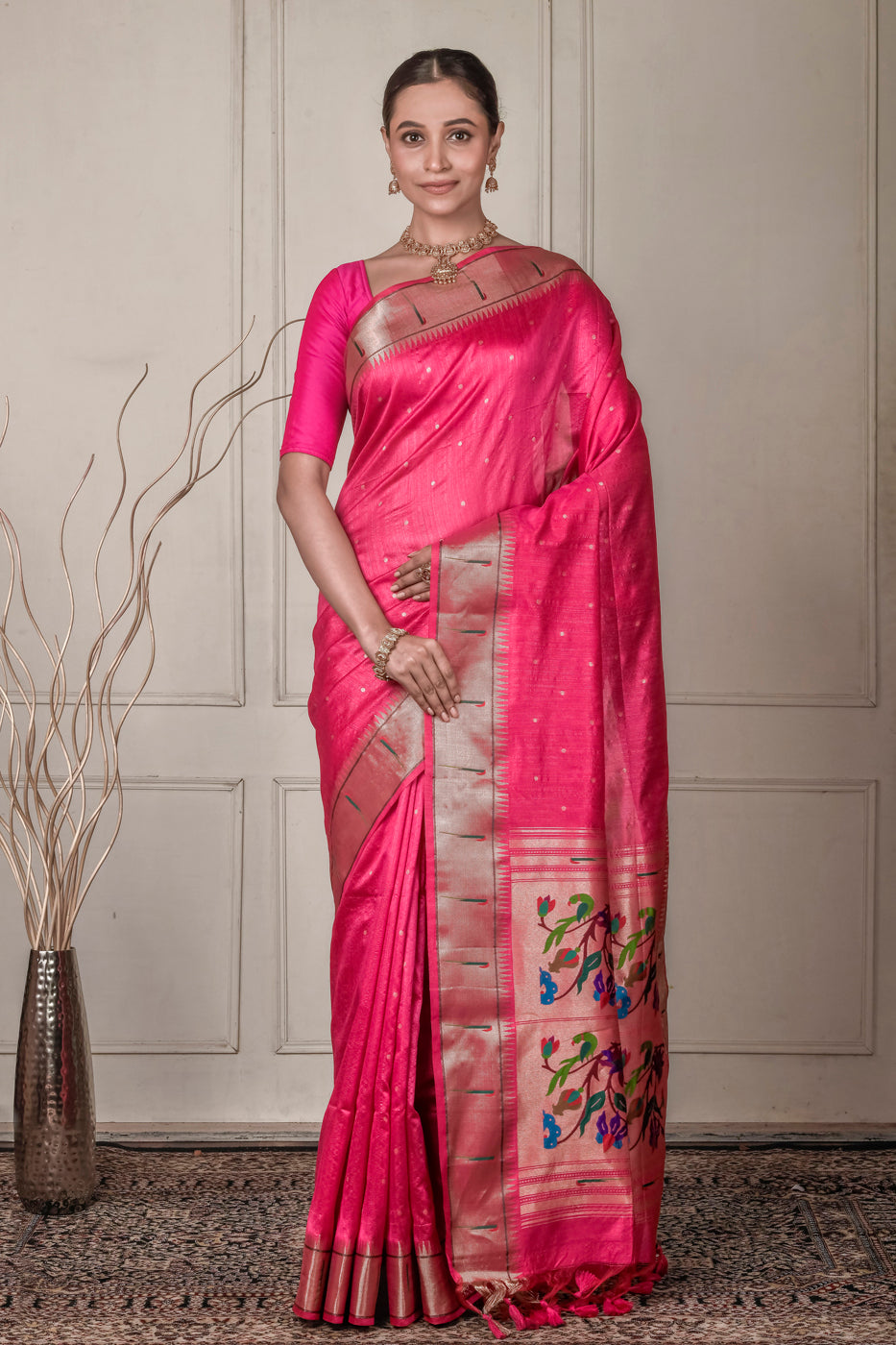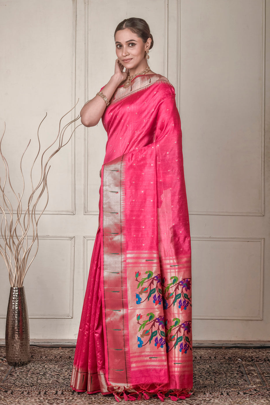 A heritage treasure, this Paithani saree radiates timeless beauty with its signature Muniya artistry.