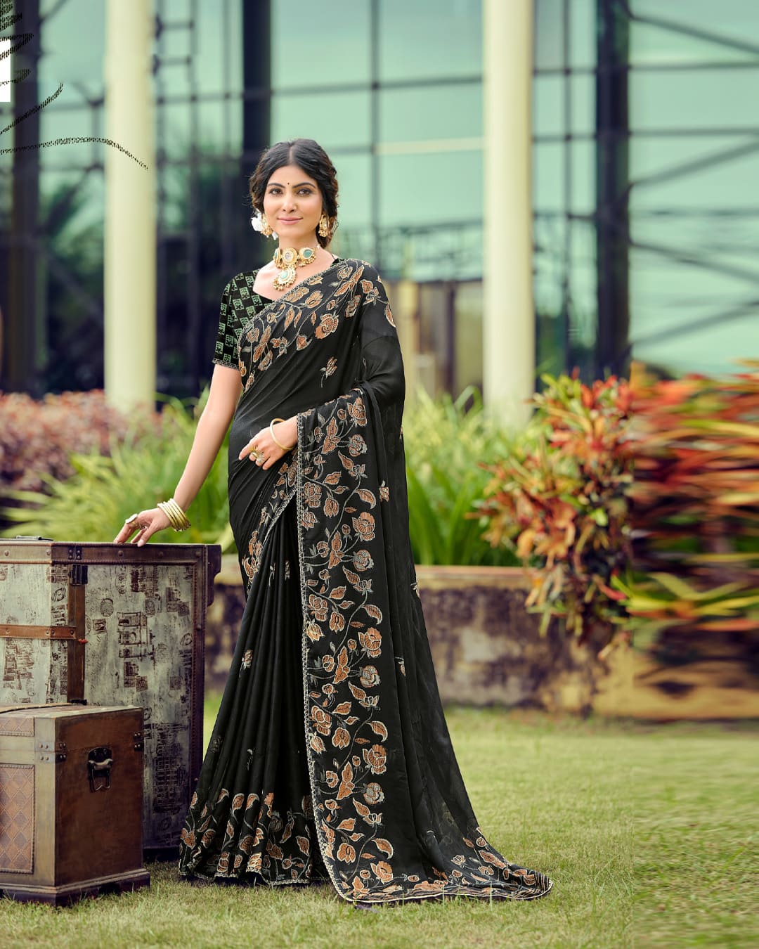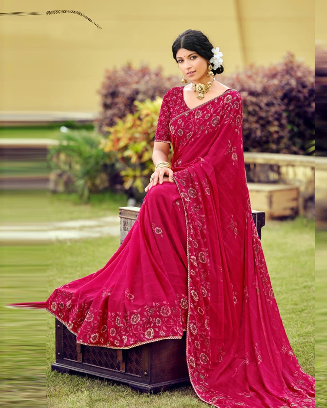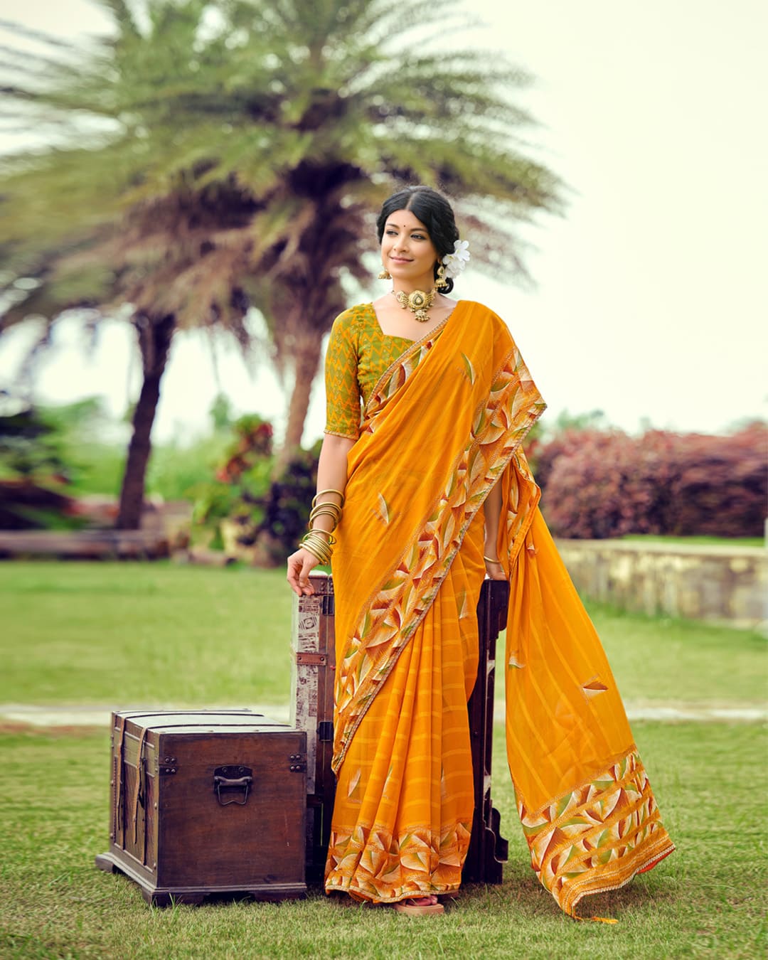 A lightweight georgette saree with a soft, flowing drape that gives a graceful and glowing everyday look.