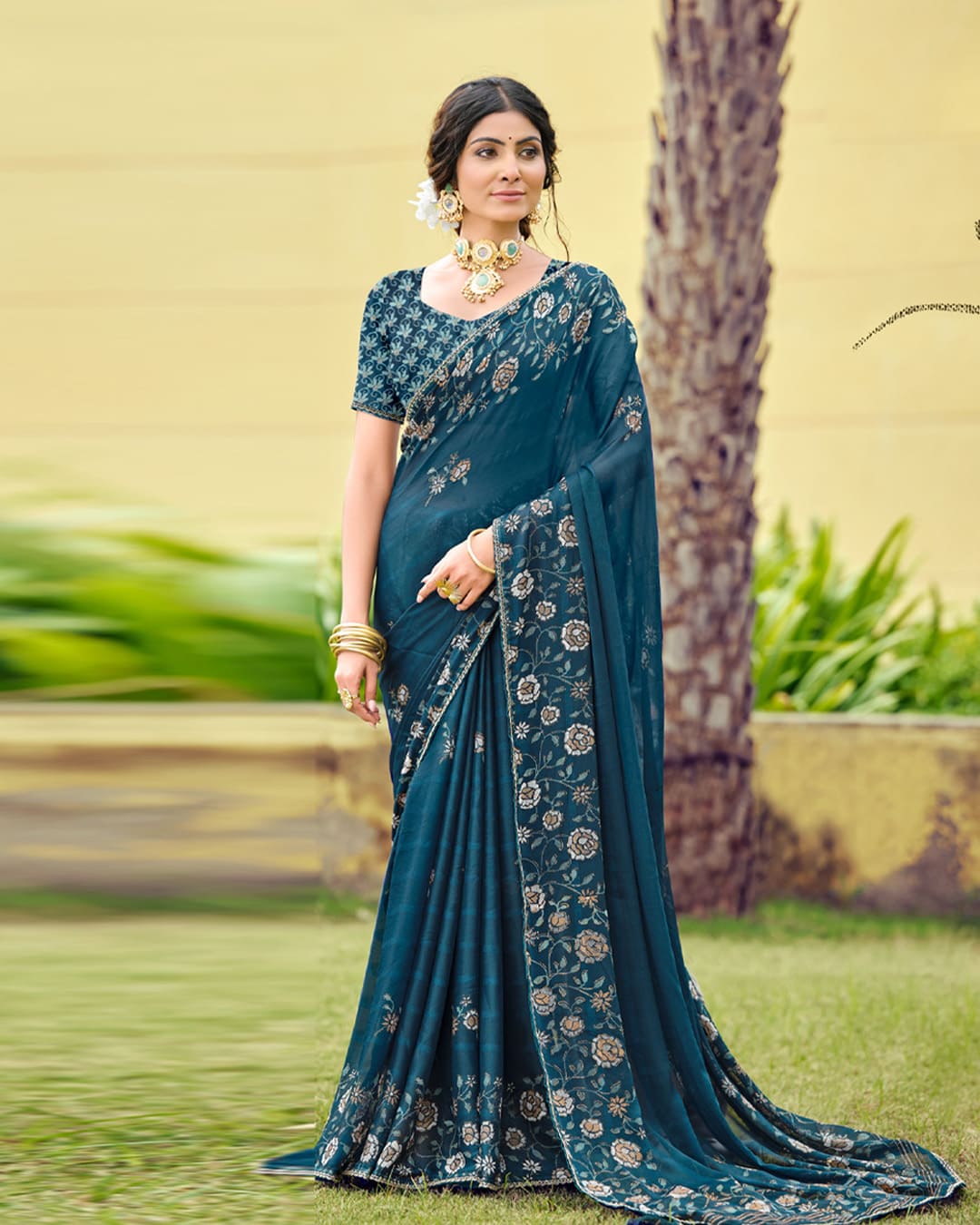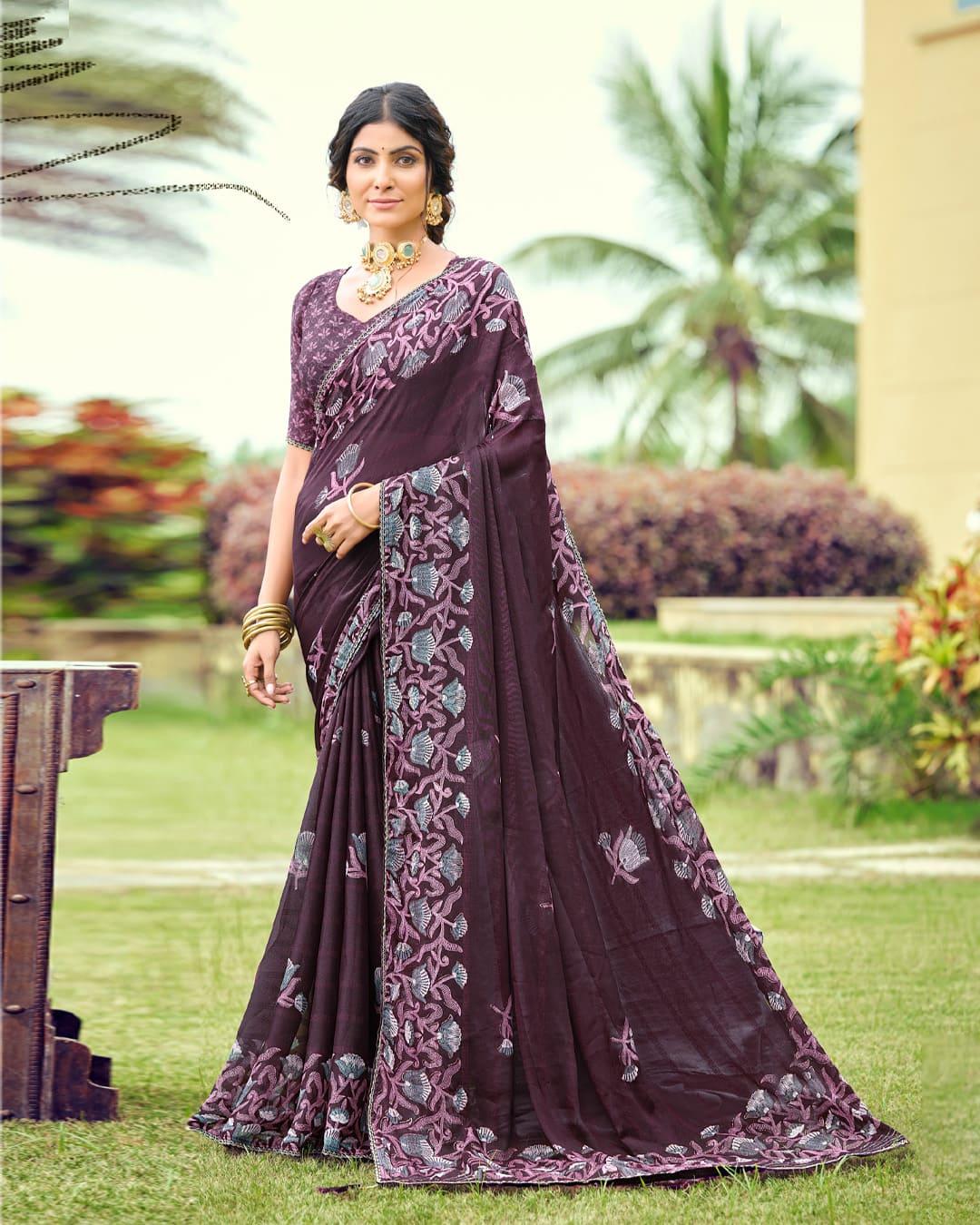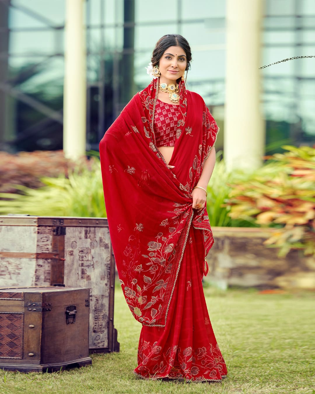 A lightweight georgette saree with a soft, flowing drape that gives a graceful and glowing everyday look.