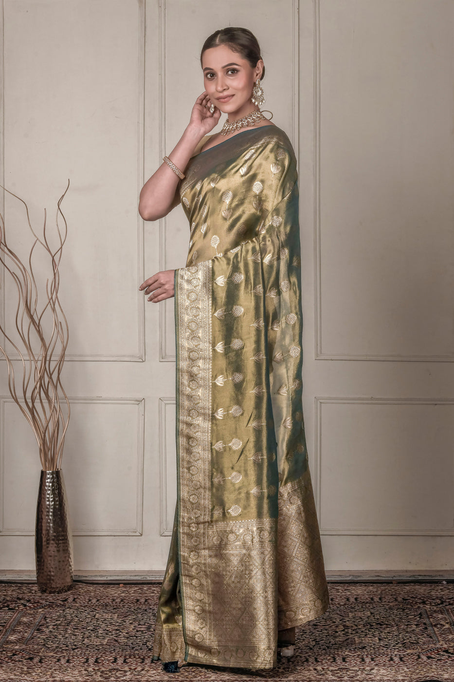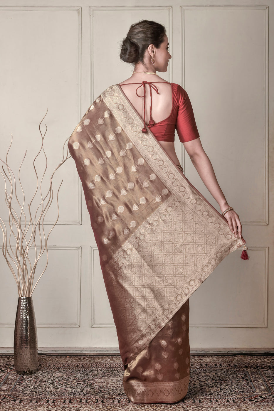 Soft, shimmering fabric enhanced with subtle butti designs, offering a graceful and stylish drape.