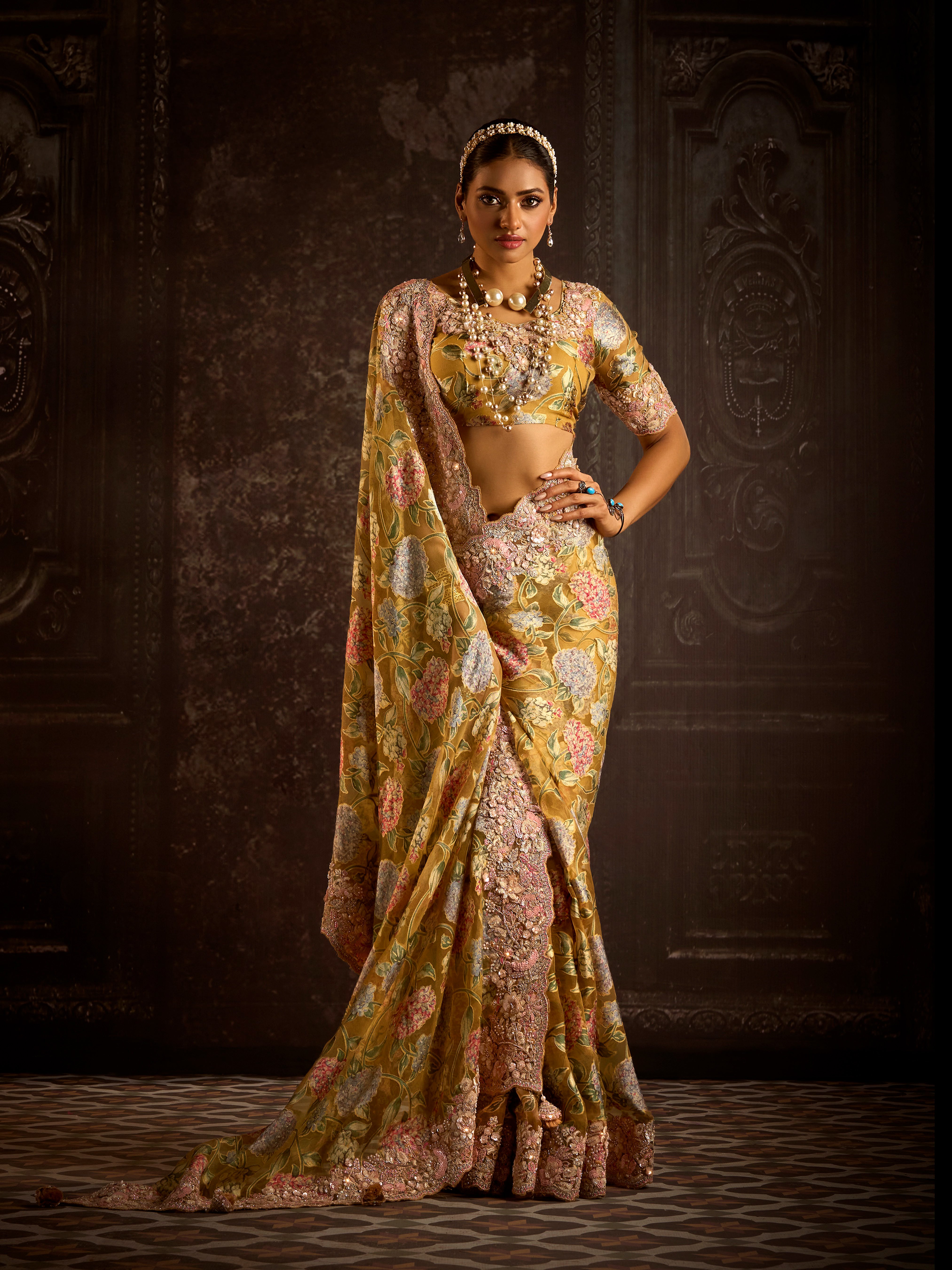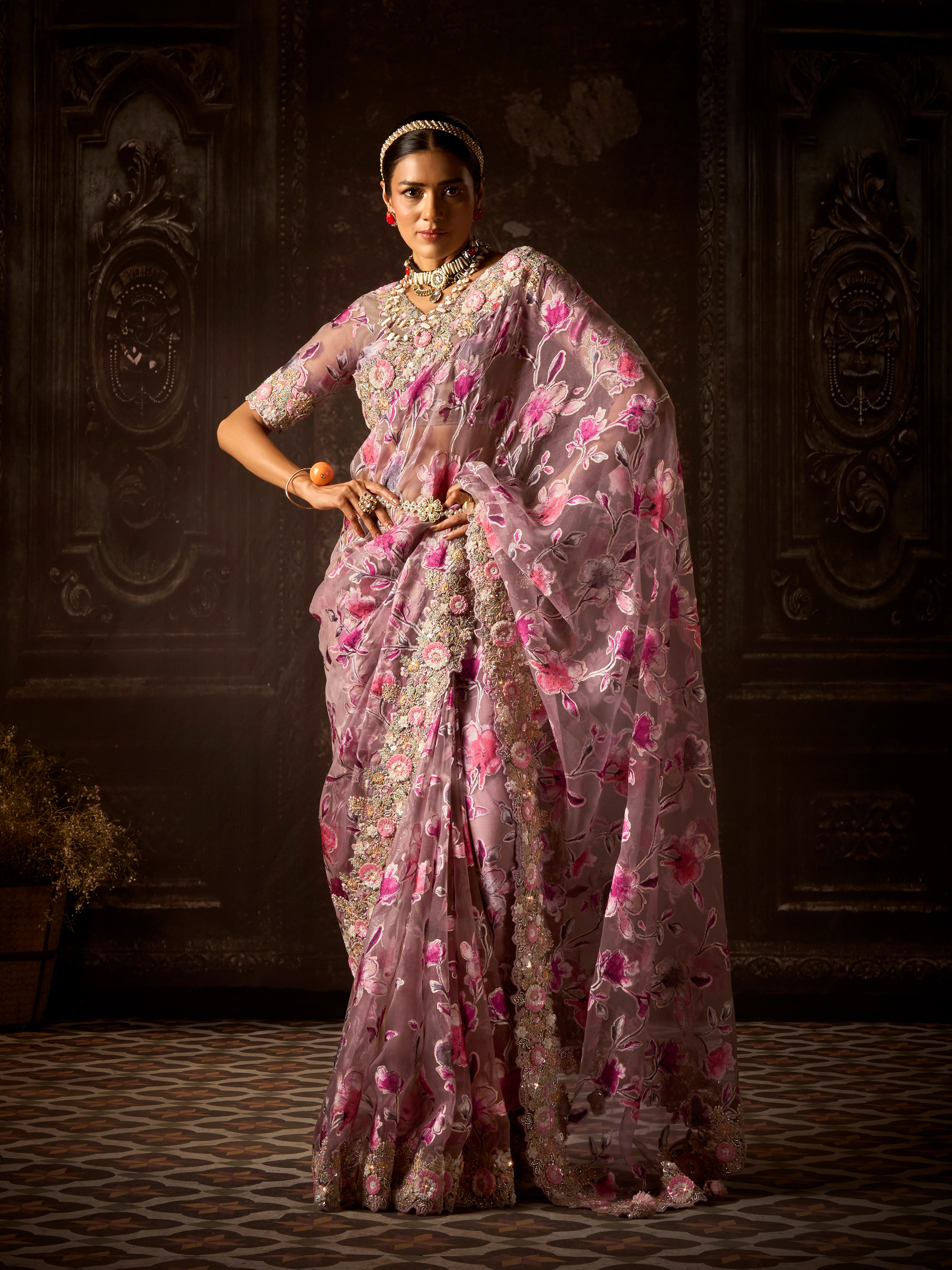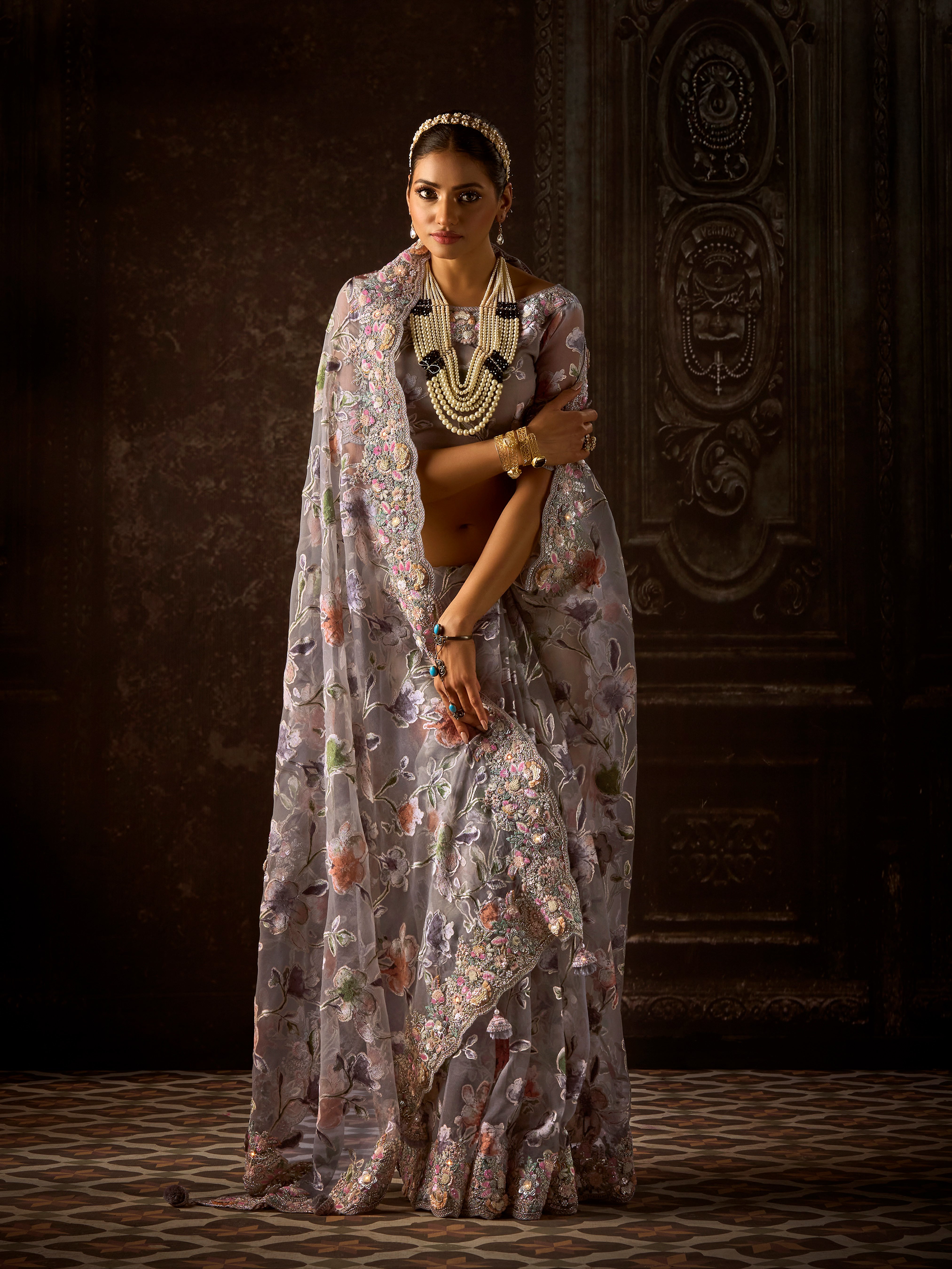 Chic, graceful, and contemporary—Kiyara Charm in Organza adds a touch of modern glam with its sheer elegance and designer flair. Perfect for parties and evening soirees.
