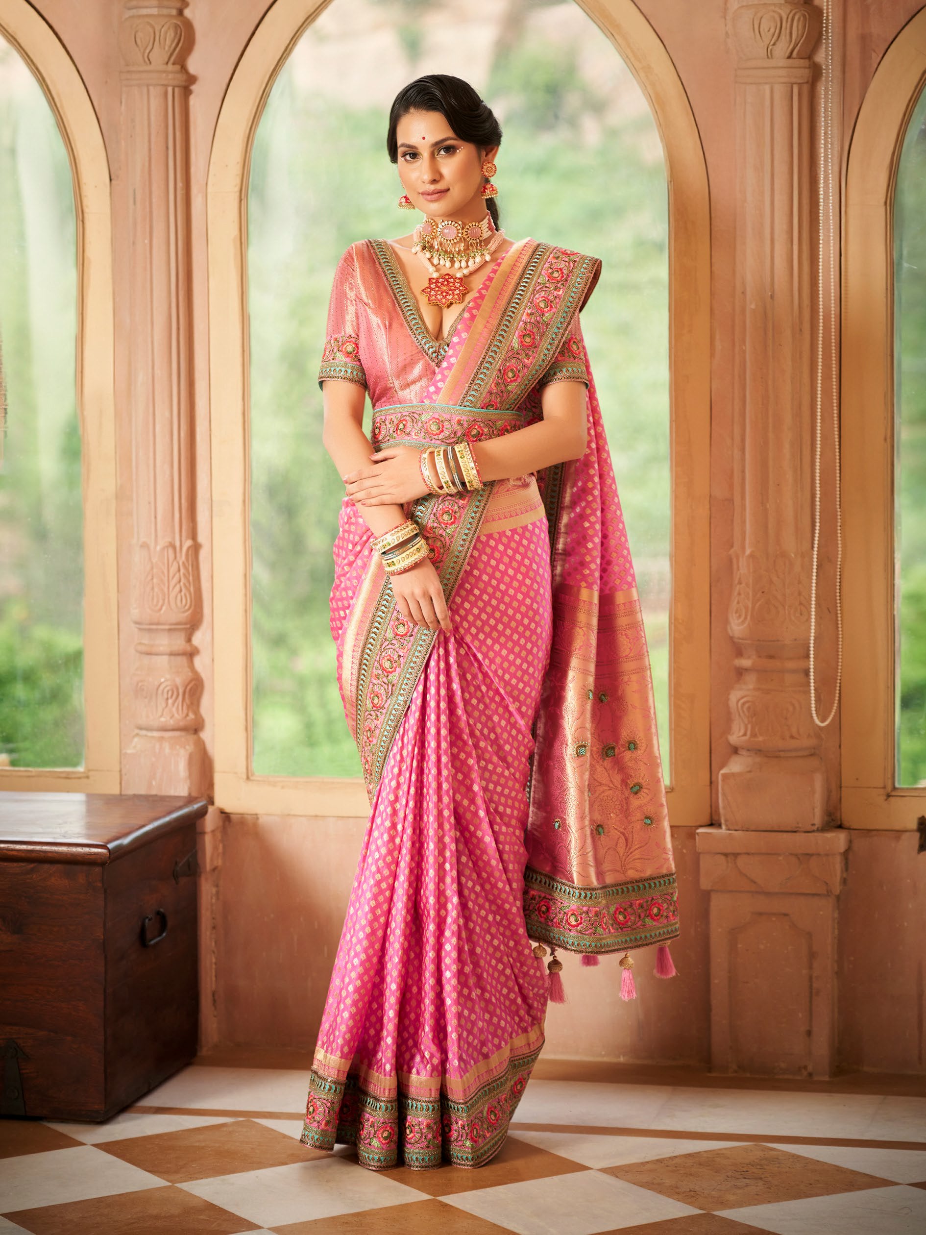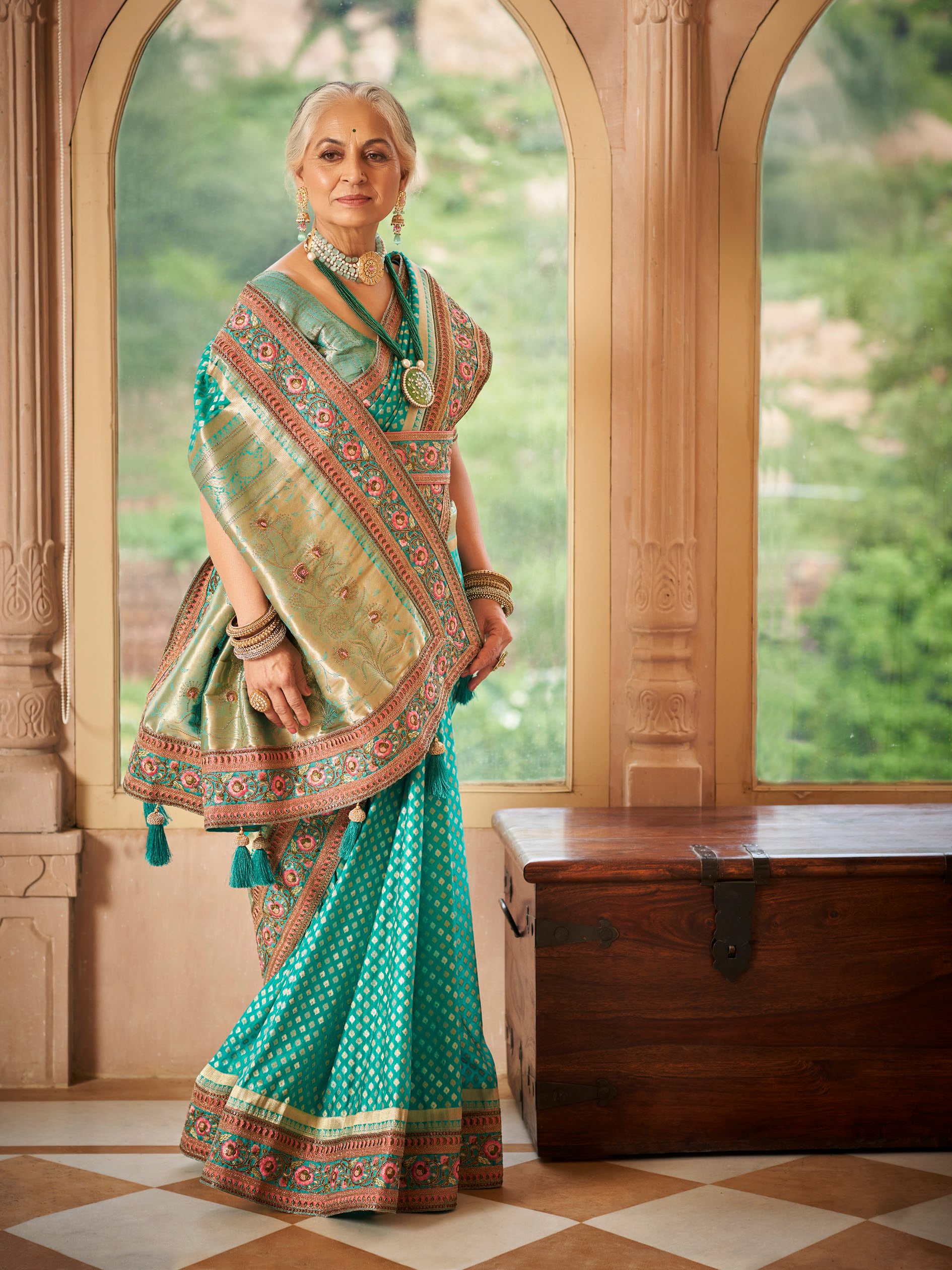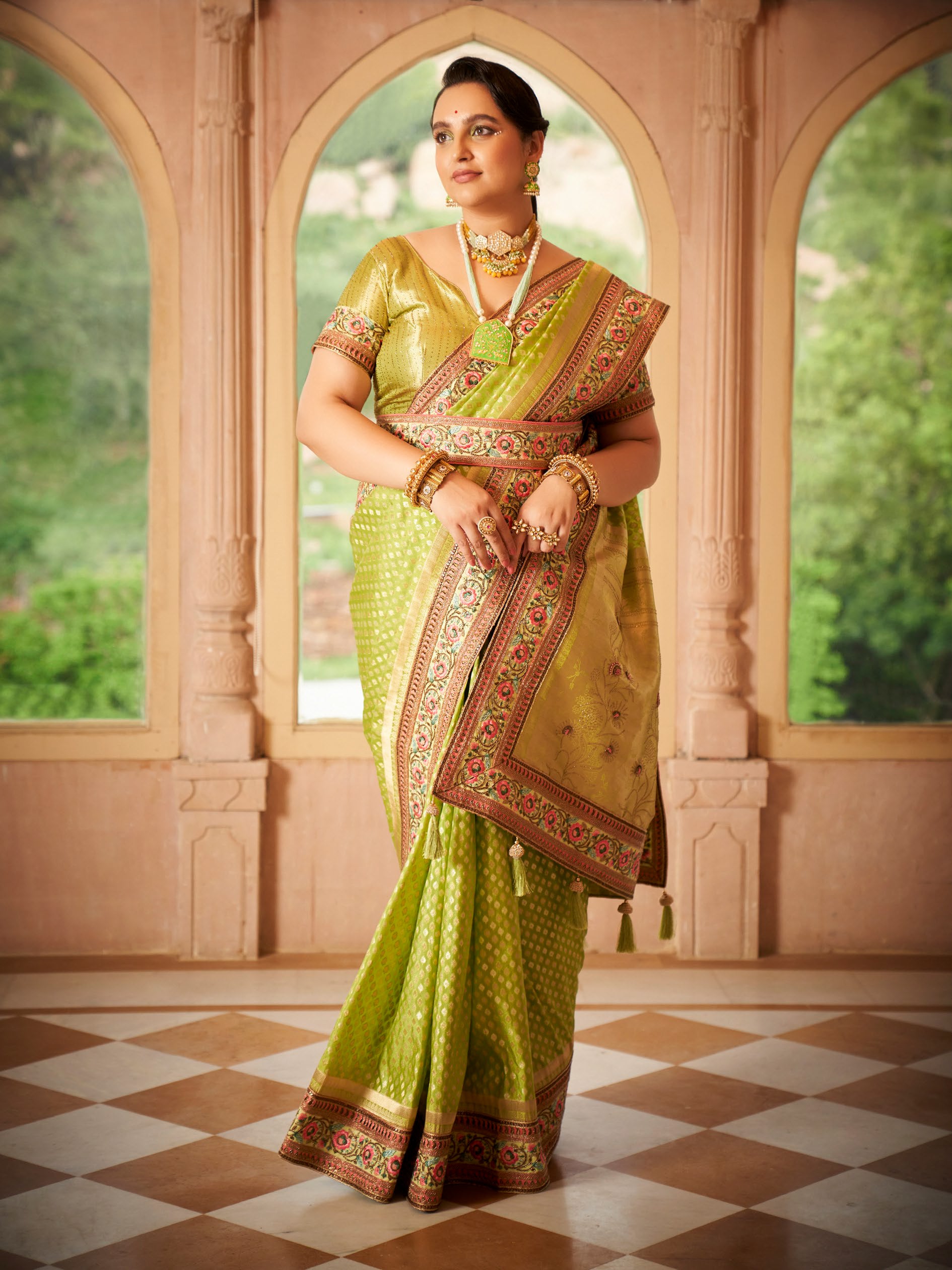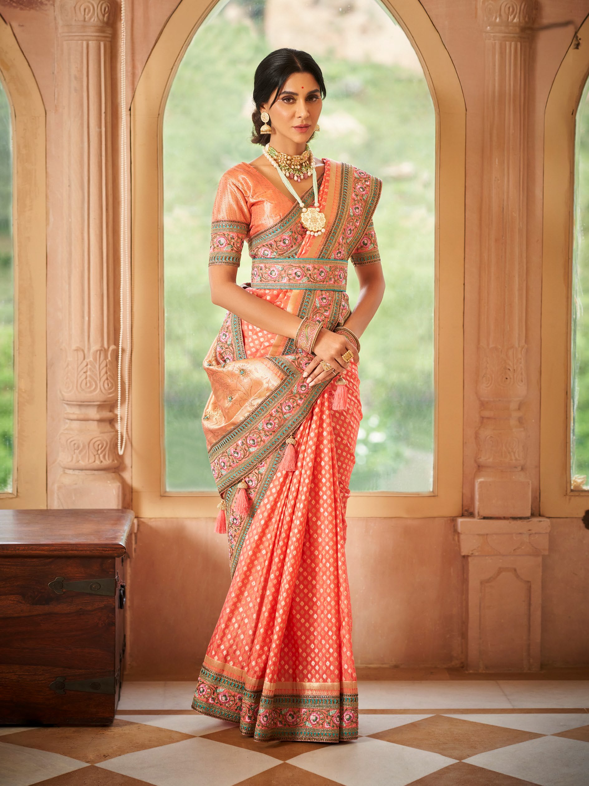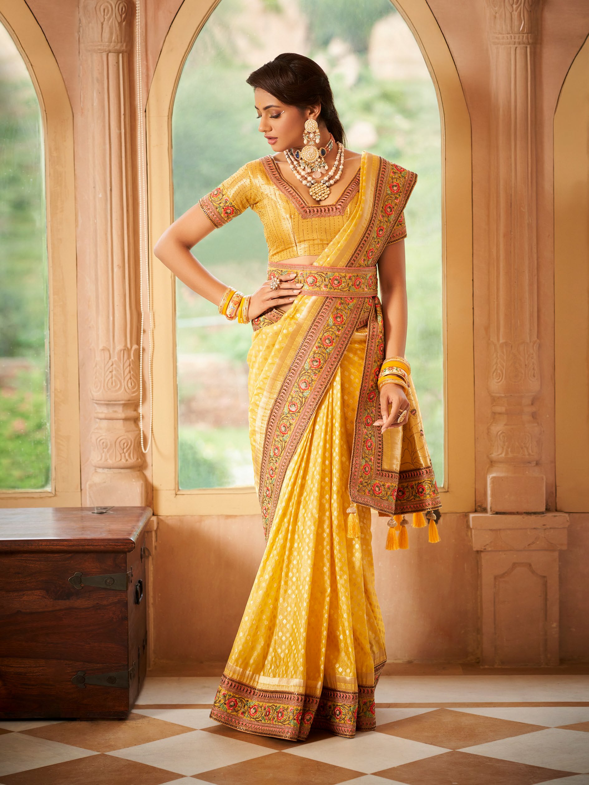 Crafted with intricate patterns on lustrous Art Silk, Anvesha Aura reflects the charm of tradition blended with a modern designer touch. A saree that adds glow to every celebration.